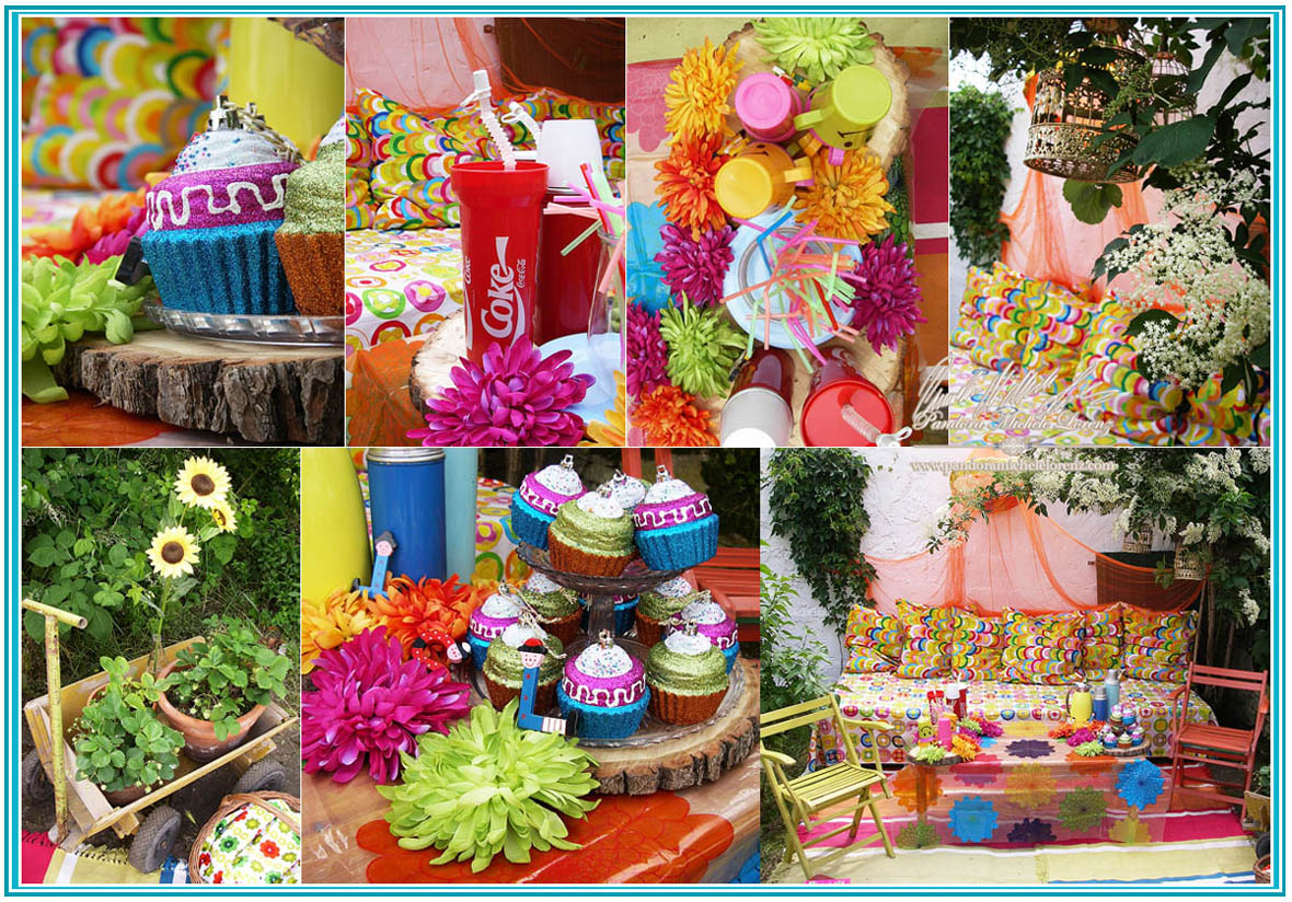 Palast des Sultans Tischdekorationen, Stehtischdeko, Buffetdeko, Centerpiece Arrangements Rainbow Lounge - Circus, Jahrmarkt, Karibik, Hawaii, Hippie