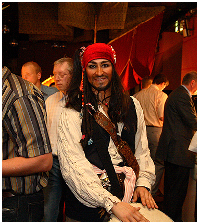 Piraten Kapitän Jack Sparrow Double & orientalischer live Percussionist Jamil Raman